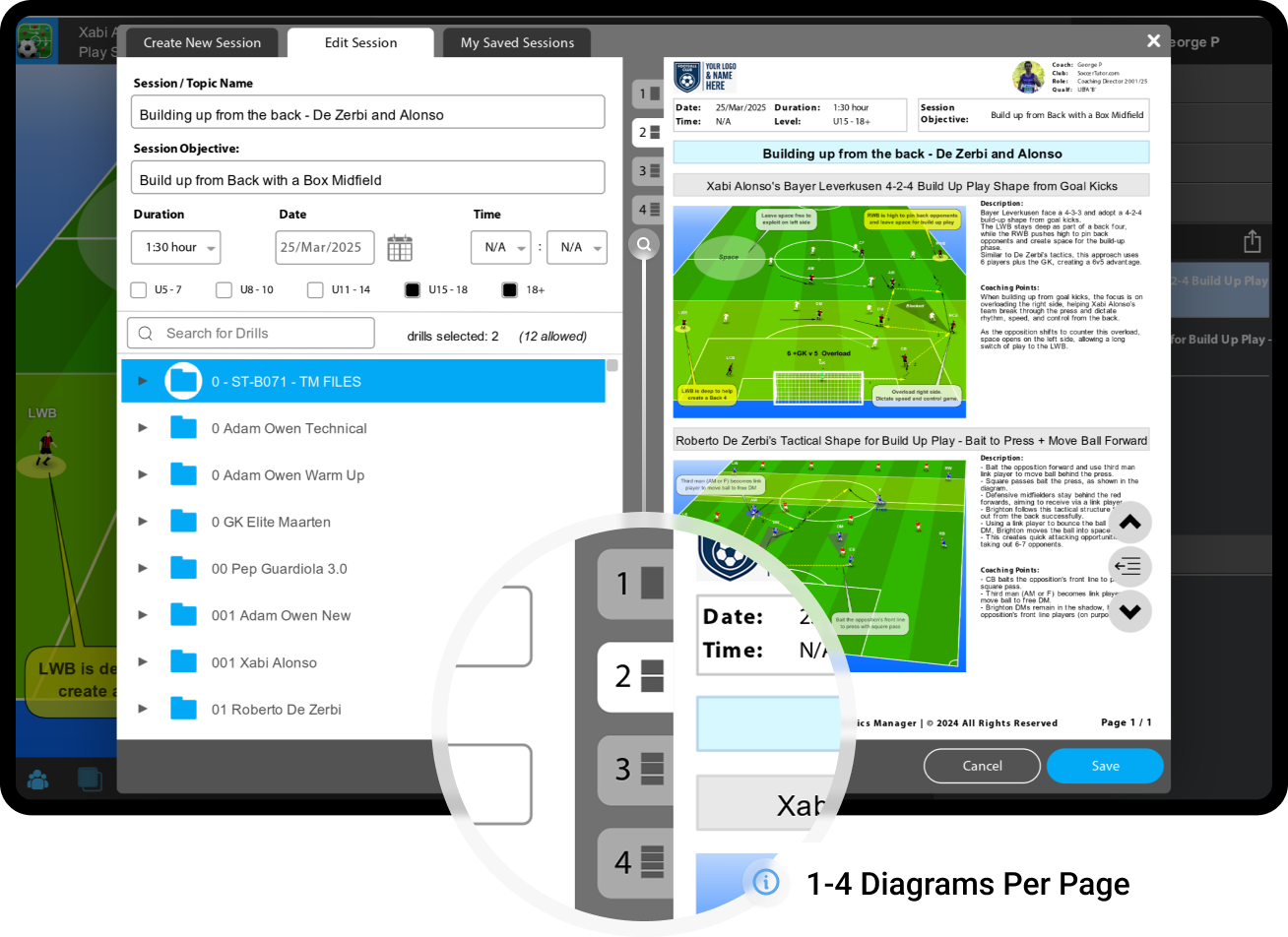 The ease of use obviously means its quick and I highly recommend it for those of you on coaching courses for excellent presentation almost as fast as drawing it free hand. And of course club and academy coaches to build a library of session plans, for consistent use and sharing with others. So many options, so much versatility, I look forward to the next level of additions to this excellent product."